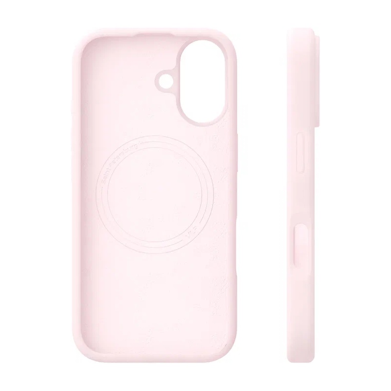 Защитный чехол из жидкого силикона с Soft Touch покрытием, которое дополнительно предотвращает скольжение смартфона в руке. Изнутри покрыт бархатистой микрофиброй, которая защищает смартфон от царапин. Чехол полностью повторяет контуры iPhone, а благодаря плотному прилеганию под него не попадает пыль и другие мелкие частицы. Аксессуар имеет специальные выступающие рамки — над дисплеем и блоком камер. Они защищают его от возможных механических повреждений. Поддерживает технологию MagSafe.
