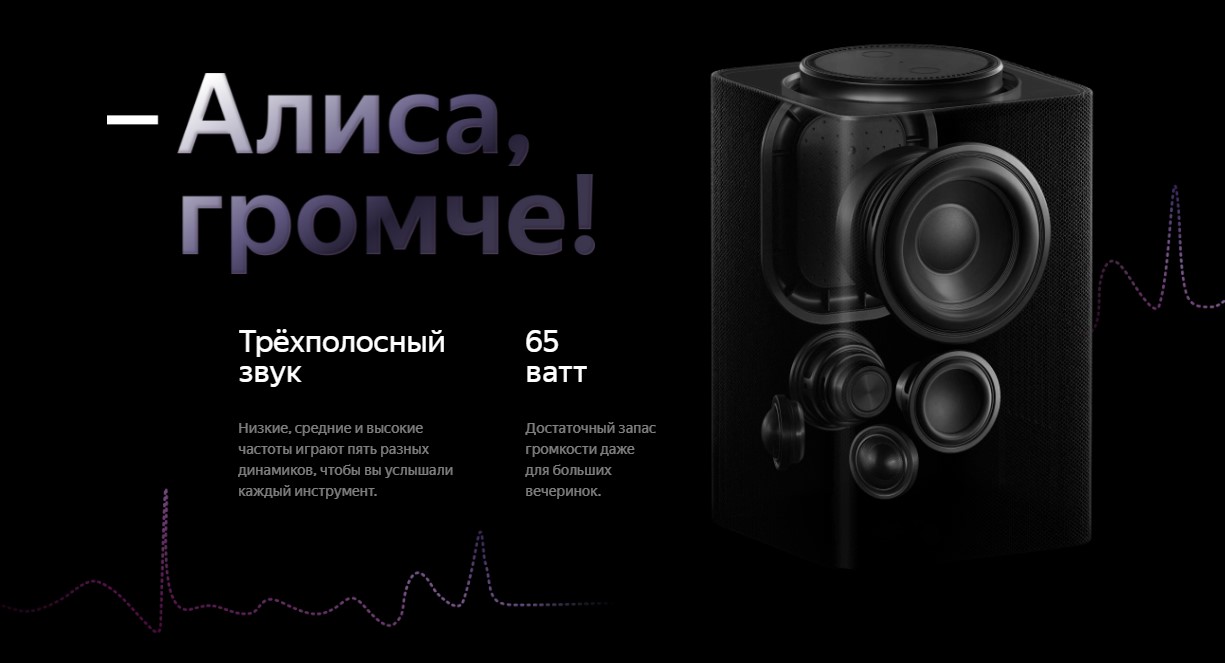 Новая и самая мощная умная колонка с Алисой. С LED-дисплеем, трехполосным звуком и видео в 4К. Получите максимум впечатлений от музыки, кино и общения с Алисой.