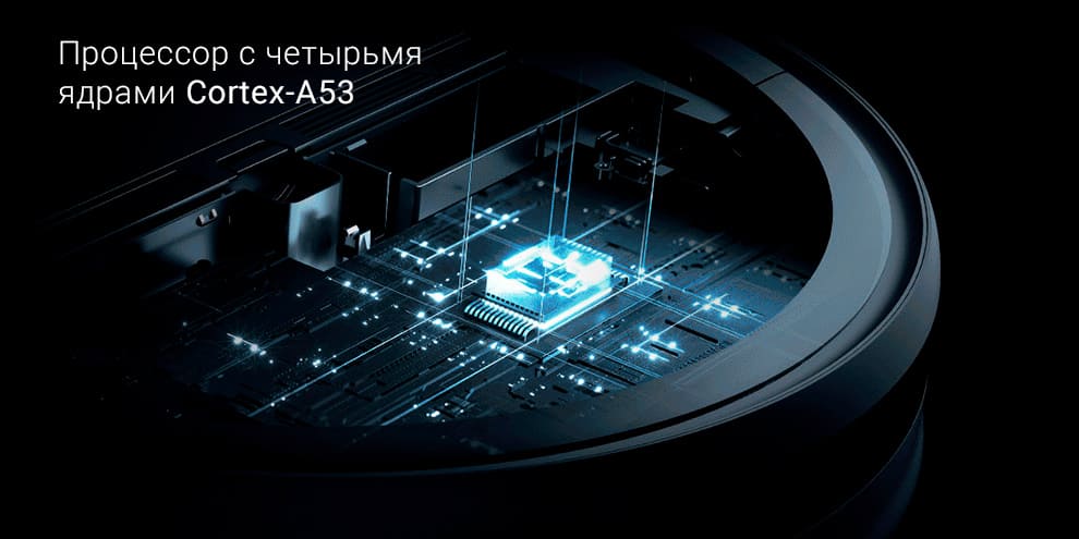 Эффективная работа с применением технологии VSLAM и визуальной навигации достигается благодаря чипу с четырьмя ядрами Cortex-A53.