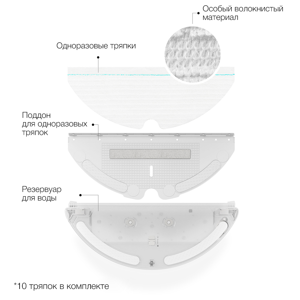 В роботе-пылесосе имеется резервуар для воды с возможностью регулировки объема подачи, что позволяет Вам регулировать его в соответствии со своими потребностями в уборке.