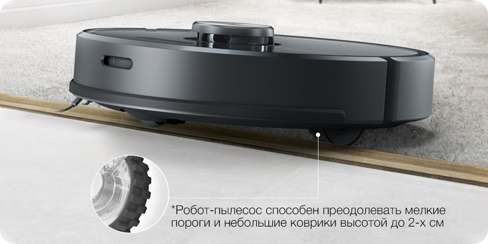 Робот-пылесос способен преодолевать мелкие пороги и небольшие коврики высотой до 2-х см* благодаря 14-ти видам датчиков.