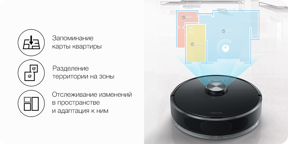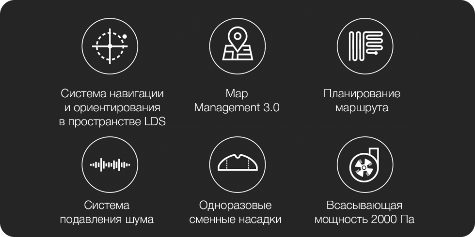 Модернизированная система навигации и ориентирования в пространстве LDS позволяет роботу строить и запоминать план комнаты, разделять территорию на зоны, а также планировать оптимальный маршрут уборки.