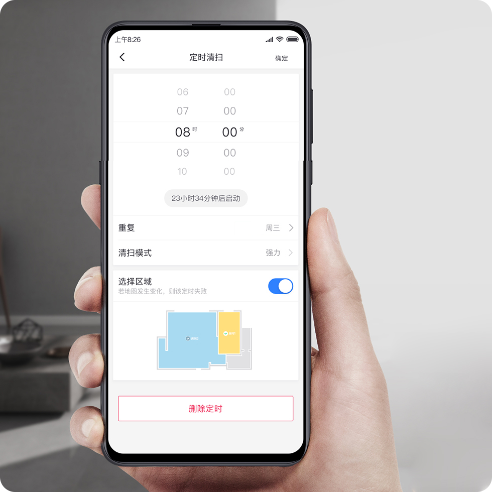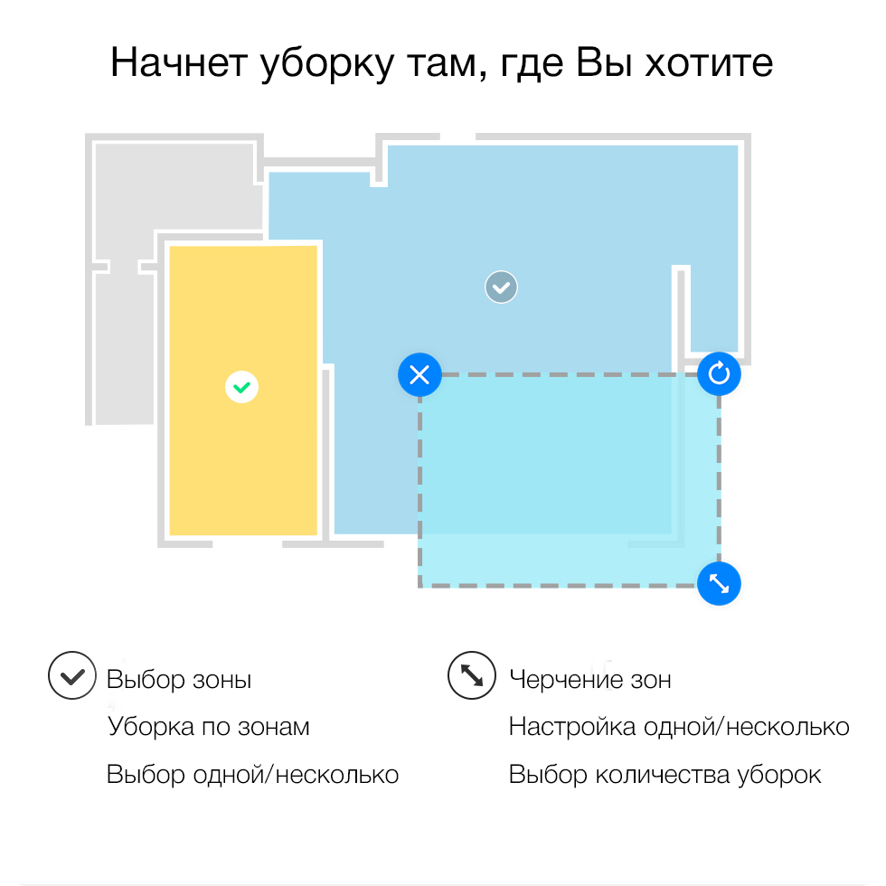 Приложение Mijia App позволяет задать зону уборки, благодаря чему робот-пылесос будет убирать только там, где Вы сами захотите.