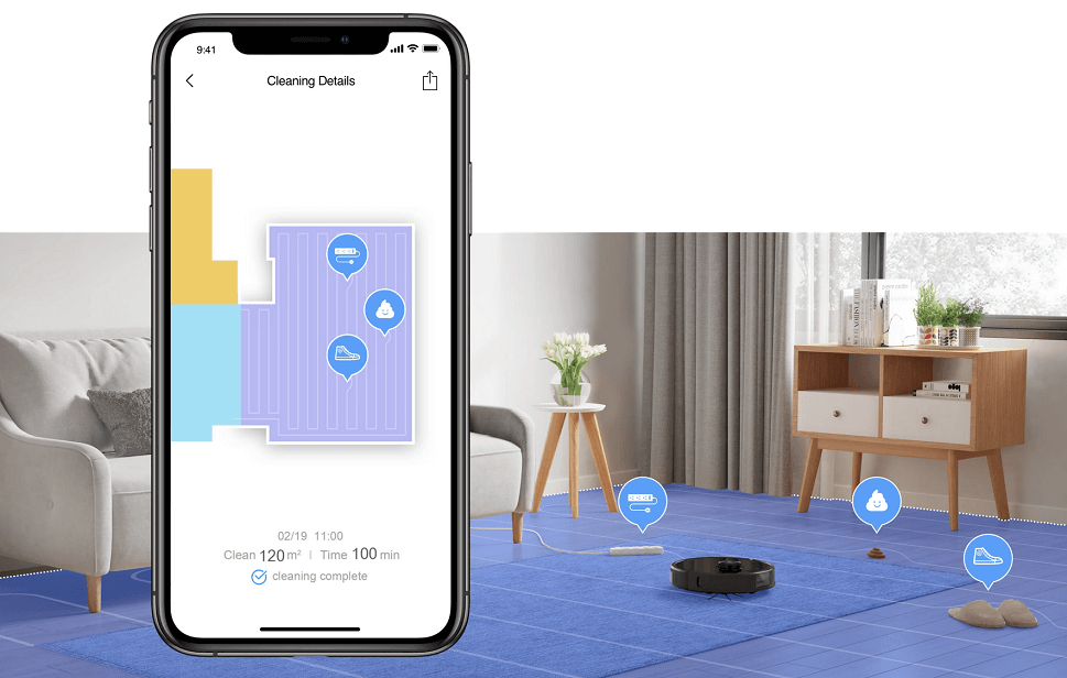 Клининг-аппарат новой модели получил в распоряжение аккумулятор емкостью 5200 мАч, который обеспечивает непрерывную работу в течение трех часов (300 м2 в режиме сухой уборки или 250 м2 в комбинированном режиме). В случае разрядки батареи девайс автоматически возвращается к док-станции для дозарядки. При этом, с функцией Smart Top Up робот может рассчитать недостающий заряд для решения поставленных задач и зарядиться ровно настолько, насколько нужно в данный момент.
